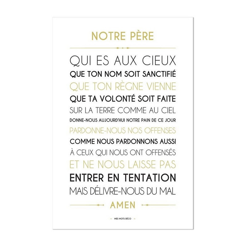 Pancarte déco en dibon blanc avec la prière du "Notre Père".