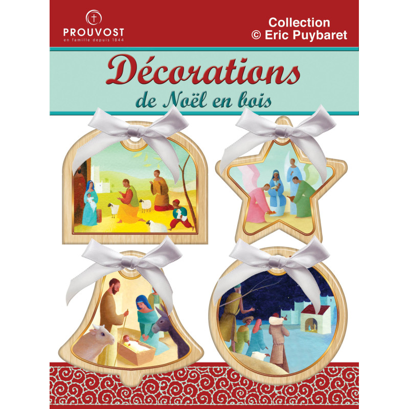 Retrouvez dans cet ensemble composé de 4 décorations de Noël en bois, diverses représentations de Noël pour décorer votre sapin.