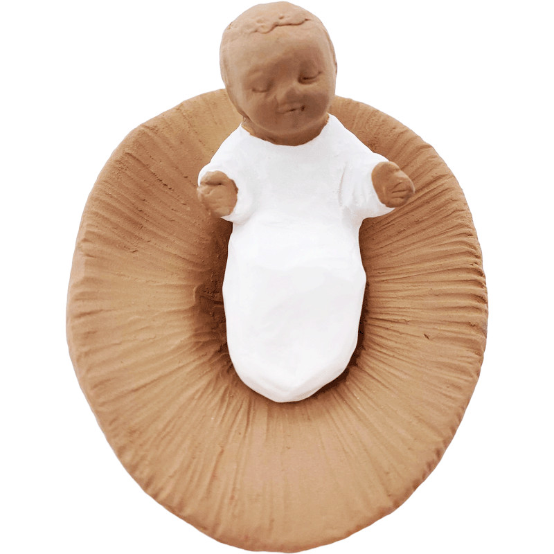 Cette statuette est magnifique. Le bébé Jésus peut être couché au choix dans les bras de Marie ou dans sa mangeoire. Et Marie ouvre ses bras pour offrir Jésus au monde. Je suis très satisfaite.