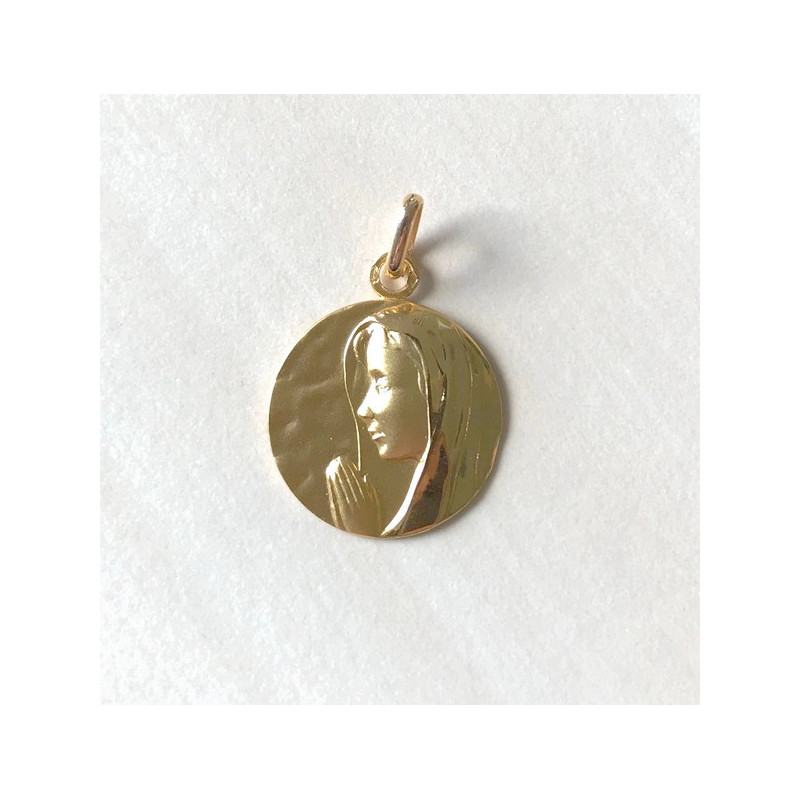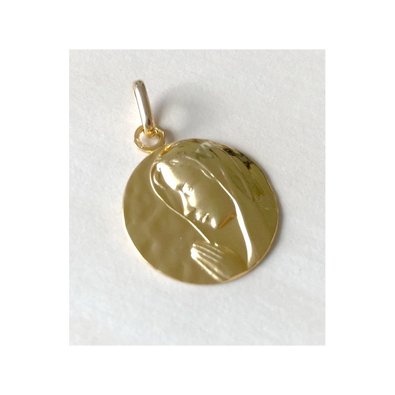 Médaille de baptême "profil de vierge" en Or mat et brillant