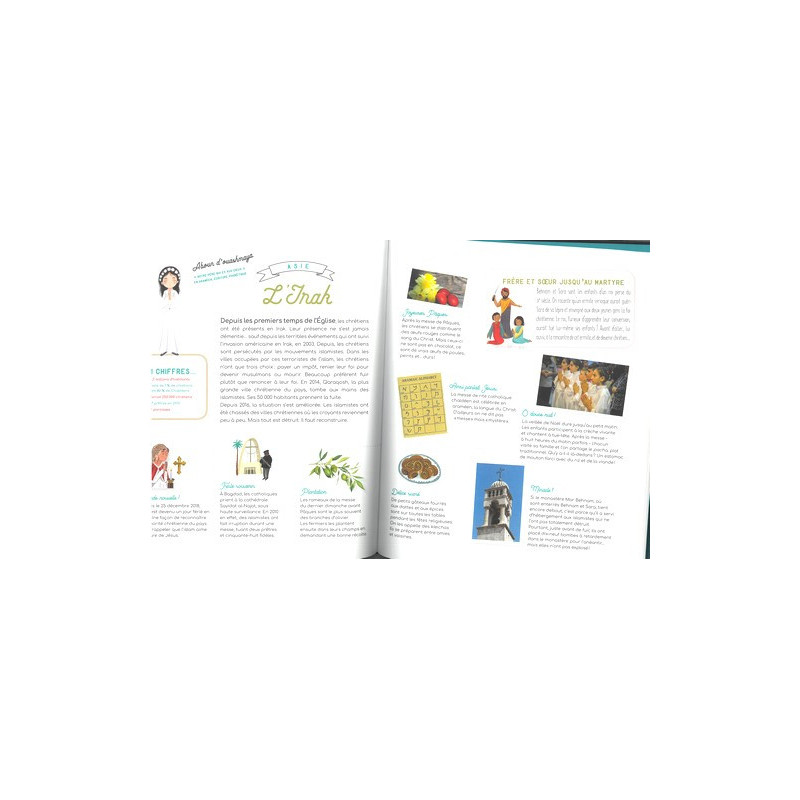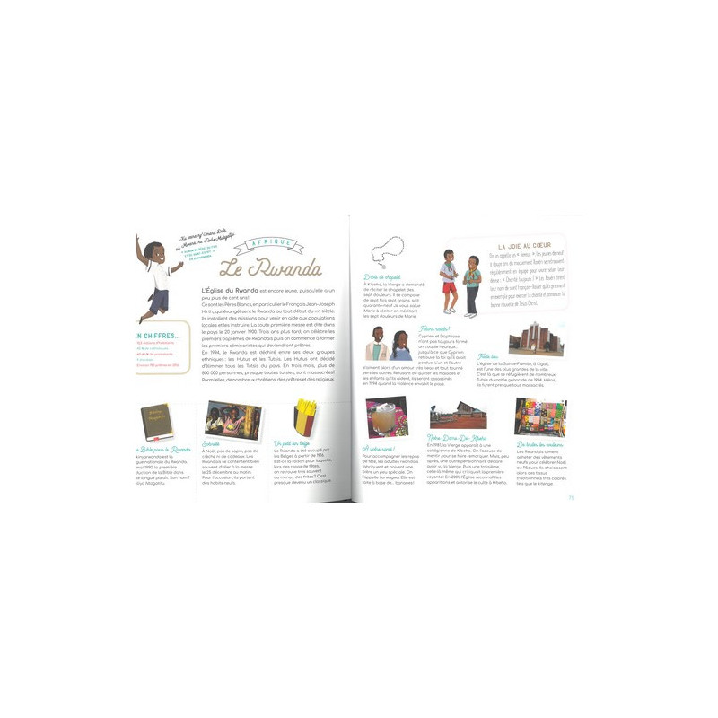 Avec Zélie et Hugo, 2 petits reporters de ton âge, pars à la rencontre des chrétiens de 25 pays : ceux qui vont à la messe en pirogue, ceux qui plongent dans l'eau gelée en plein mois de janvier, ceux qui risquent leur vie et se cachent pour croire... sans oublier les élèves qui ont des devoirs de catéchisme notés et les prêtres qui célèbrent la messe dans des salles de concert pleines à craquer !