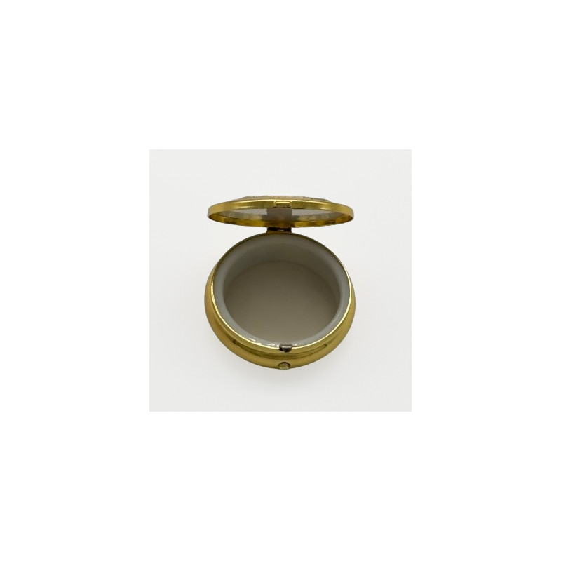 Boite à hosties dorée avec la représentation du dernier repas, la Cène.