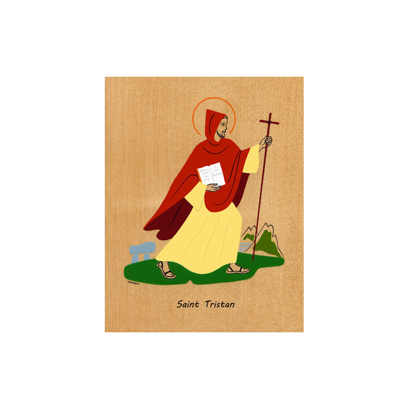 Cadre religieux en bois laminé représentant Saint Tristan.