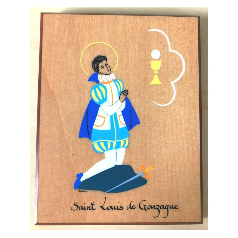 Cadre religieux en bois laminé représentant Saint Louis de Gonzague.