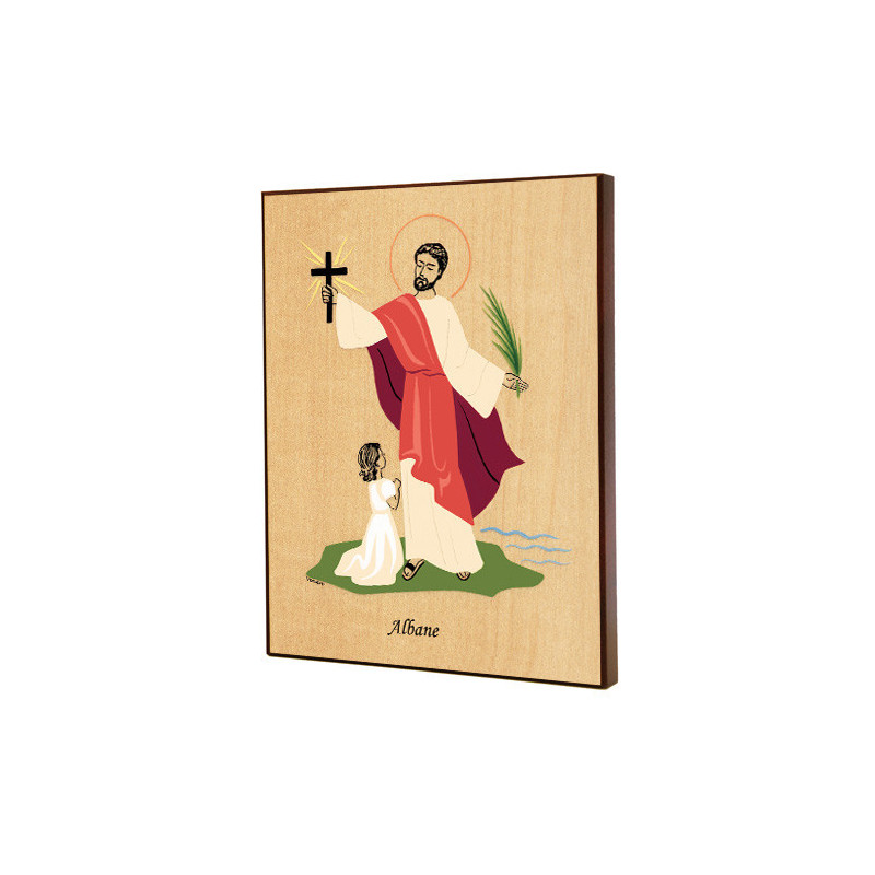Cadre religieux en bois laminé représentant Sainte Albane.
