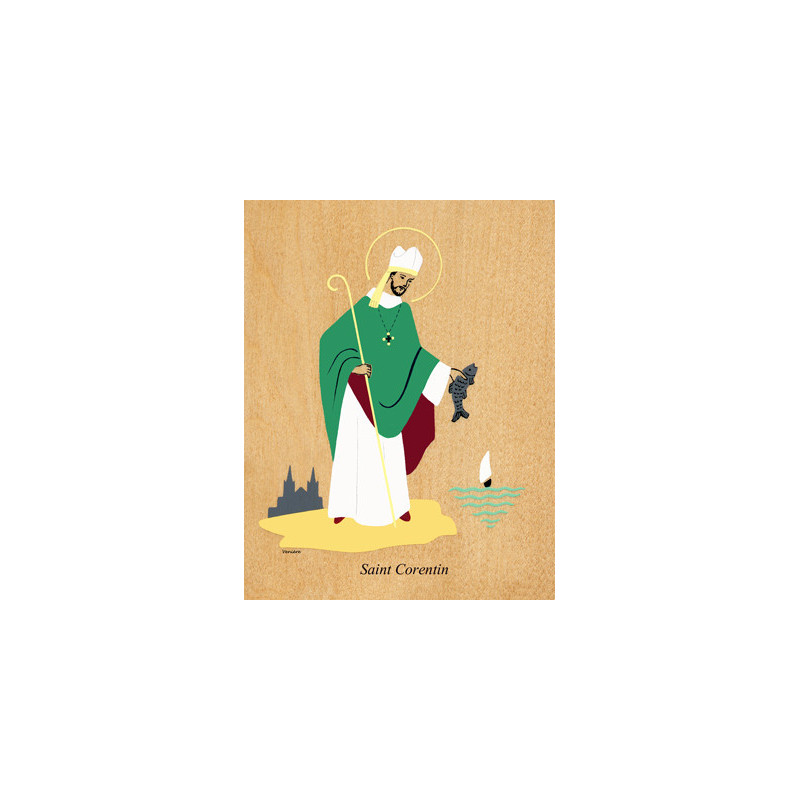Cadre religieux en bois laminé représentant Saint Corentin.