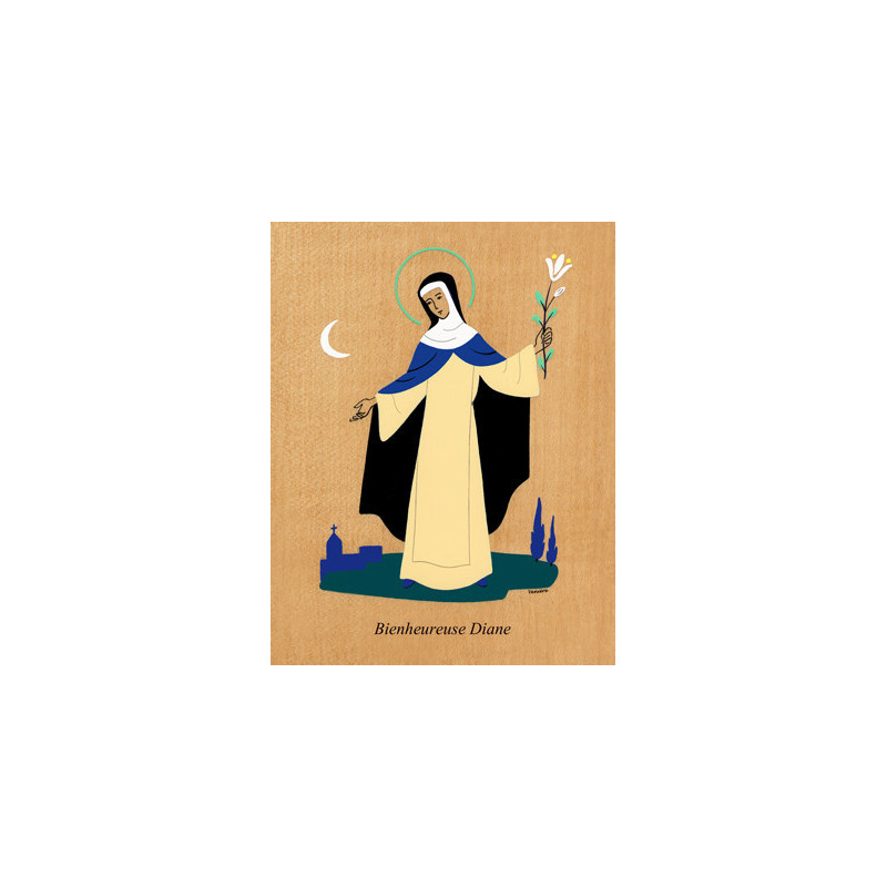 Cadre religieux en bois laminé représentant la Bienheureuse Diane.
