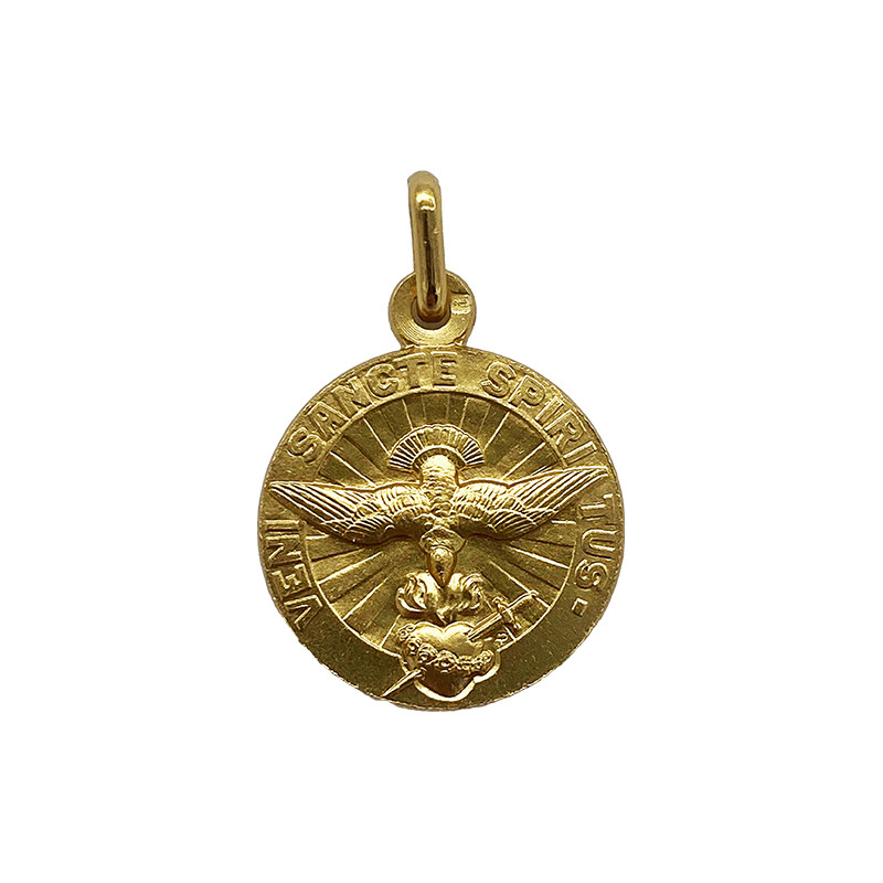 Le Saint Esprit est l'une des trois personnes de la Trinité, présente dans la religion chrétienne. La médaille est finement travaillée, avec des détails précis et un design élégant qui en font un bijou intemporel.
