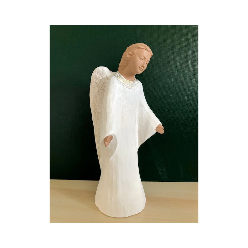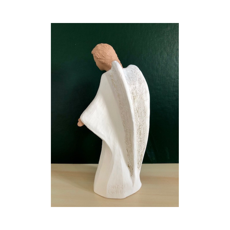L'ange qui a annoncé la bonne nouvelle est évidemment un personnage central de la crèche de Noël. Cet ange Nuit de Lumière est incliné et a les bras ouverts comme message de bienvenue et de gratitude.