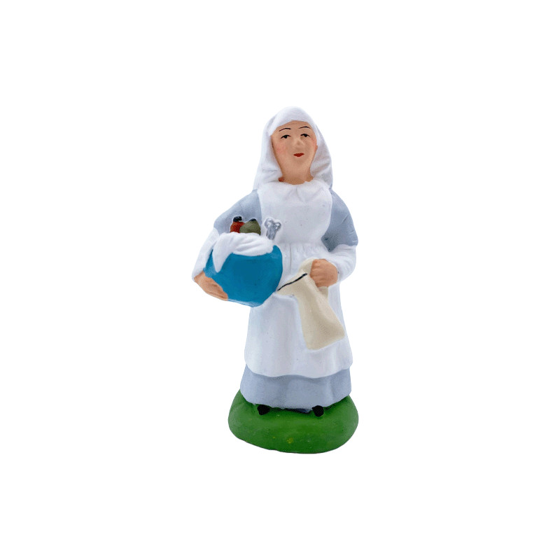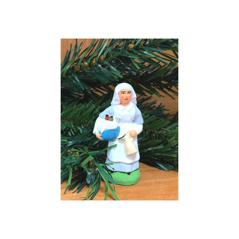 Depuis toujours, l'infirmière est un symbole fort de soins et de compassion. Dans le contexte de la crise sanitaire que nous traversons, son rôle essentiel est davantage mis en lumière. Ce santon est un hommage à tous les professionnels de la santé qui se dévouent pour le bien-être de la communauté.