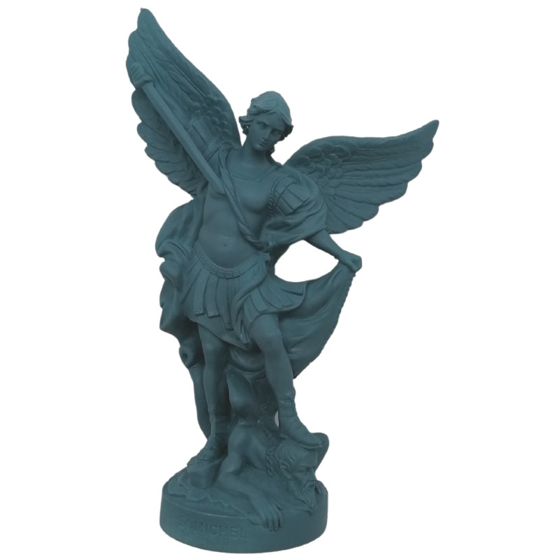 Statue en albâtre de Saint Michel, coloris bleu pétrole.