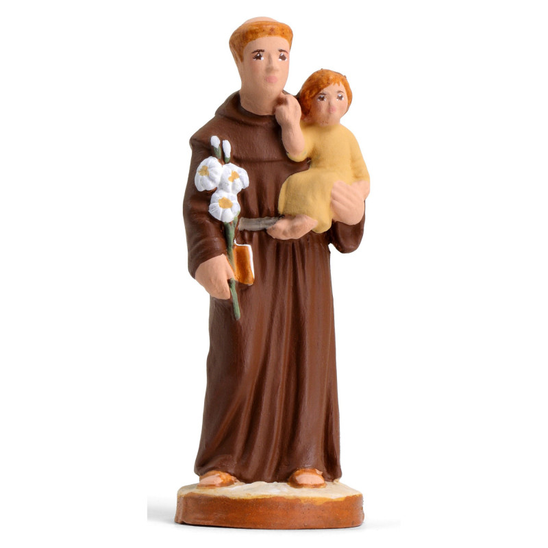Complétez votre crèche de Noël Arterra par "Saint Antoine de Padoue". Ce saint franciscain revêt une bure marron et la tonsure. Il porte l'enfant Jésus et une fleur de lys. De sa naissance au Portugal au XIIIe siècle à sa mort précoce, la vie de Saint Antoine fut d'une intensité exceptionnelle malgré 10 années de prédication seulement. Il fut grand orateur, prédicateur, méditatif. Son combat : porter la Bonne Nouvelle et évangéliser dans toute l'Europe. On l'appelle aussi "le faiseur de miracles" pour tous les prodiges qu'il a fait ! Il est d'ailleurs proclamé saint un an après sa mort seulement !