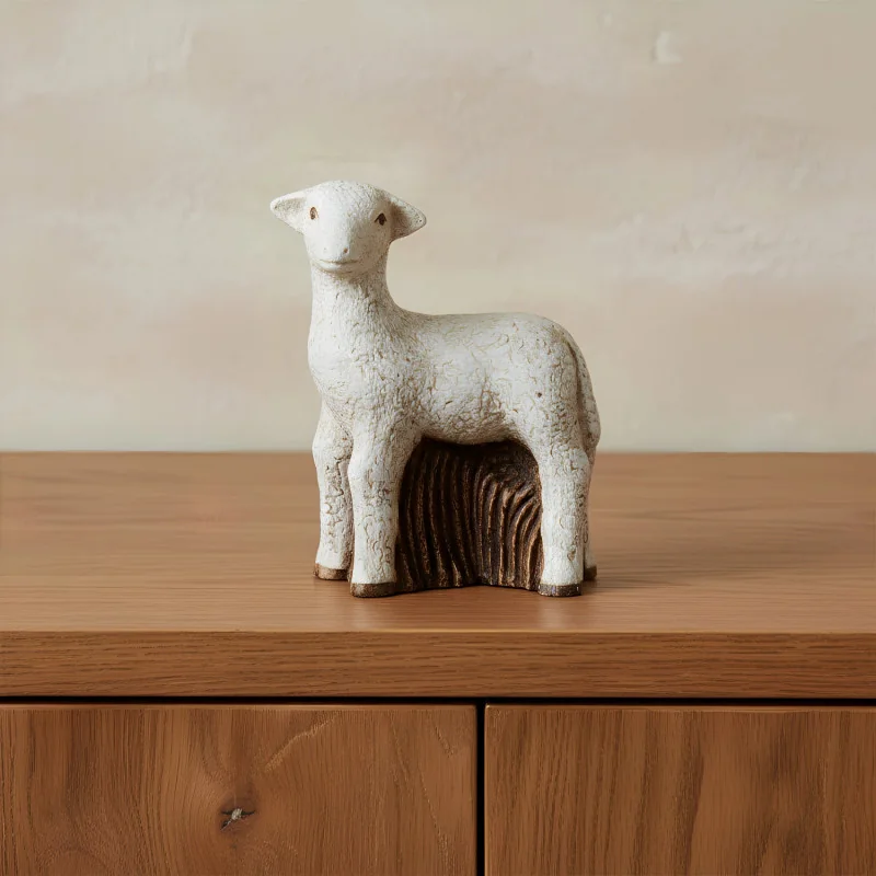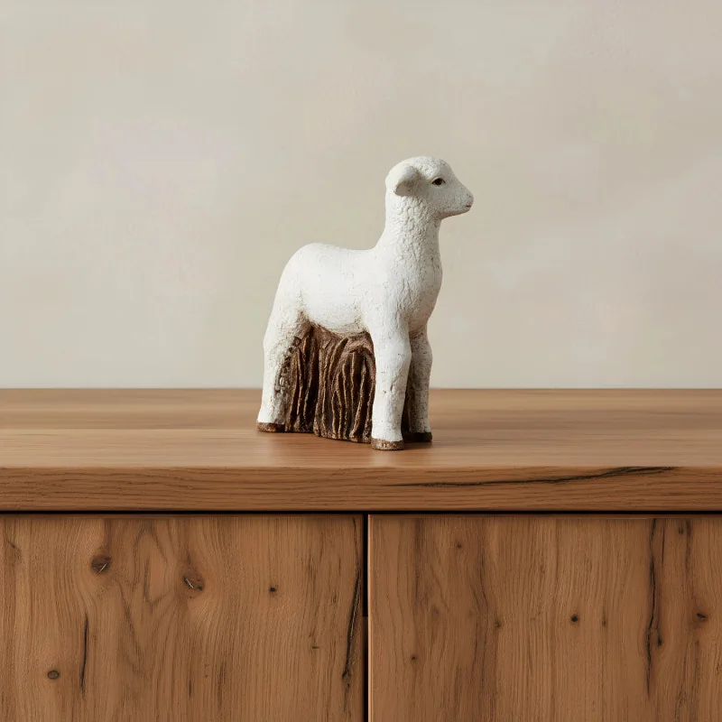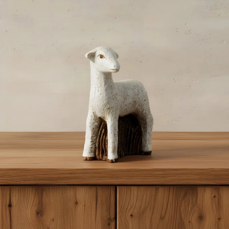 Brebis, réaliséé en pierre naturelle: la dolomie. Cette création artisanale des soeurs de Bethleem mesure 11cm. Les finitions blanches, noires et dorées sont faites à la main.