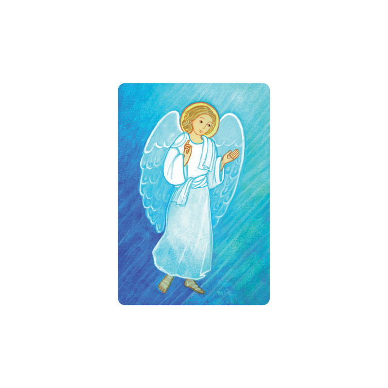 Magnet religieux représentant Ange gardien. Dessin de la célèbre illustratrice Maïte Roche. Dimensions : 55x80mm.