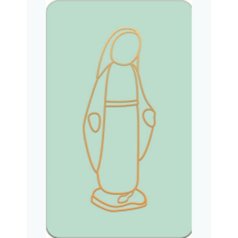 Faites plaisir à vos proches avec cette jolie carte Emany de couleur vert pastel représentant la vierge miraculeuse, finition dorée et papier effet peau de pêche. Cette nouveauté 2023 est disponible en 15 modèles différents.