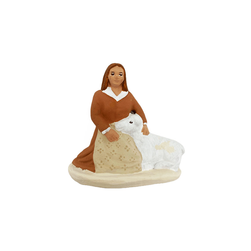 Ce santon représente une femme à genou caressant un mouton. Il symbolise l'amour et la bienveillance envers les animaux.