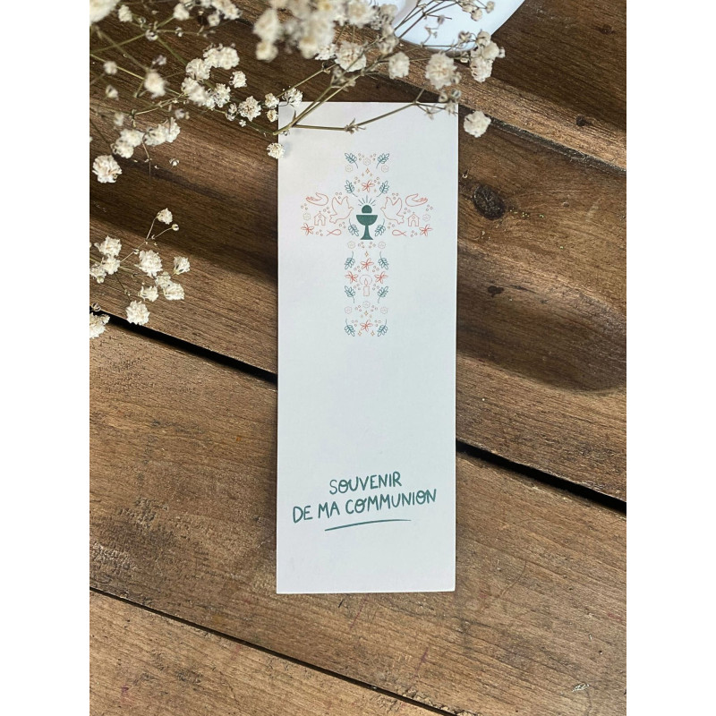Ce kit exclusif de 12 signets représente une croix ornée de symboles religieux, évoquant l'Eucharistie dans des tons verts et corail apaisants. Ils sont le souvenir parfait pour une communion ou peuvent servir d'élégantes invitations pour cet événement sacré. Chaque signet est une célébration de la foi, un rappel paisible de l'engagement spirituel pris lors de la communion.