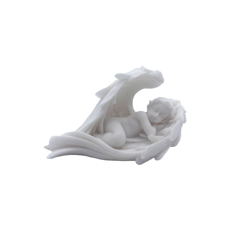 Fabriquée en Europe selon des normes de qualité rigoureuses, cette statue est en pierre d'albâtre blanche, offrant une texture lisse et une finition détaillée. Le design représente un ange avec un papillon, symbolisant la légèreté, la transformation et la présence céleste.