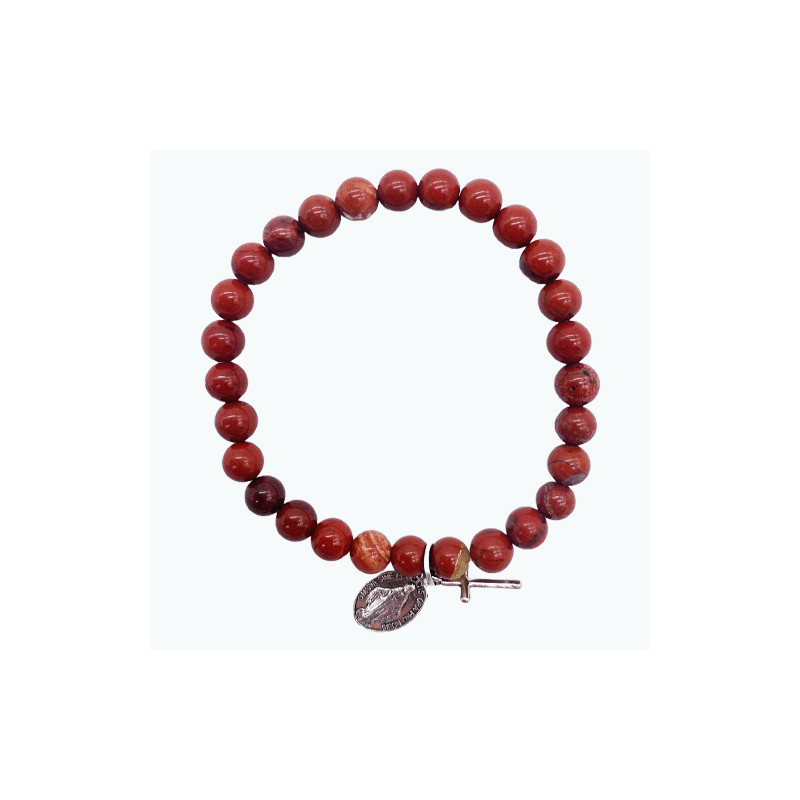Ce magnifique bracelet en pierre Jaspe rouge de 6 mm est un bijou conçu pour ceux qui recherchent une connexion spirituelle profonde tout en exprimant leur foi avec élégance.