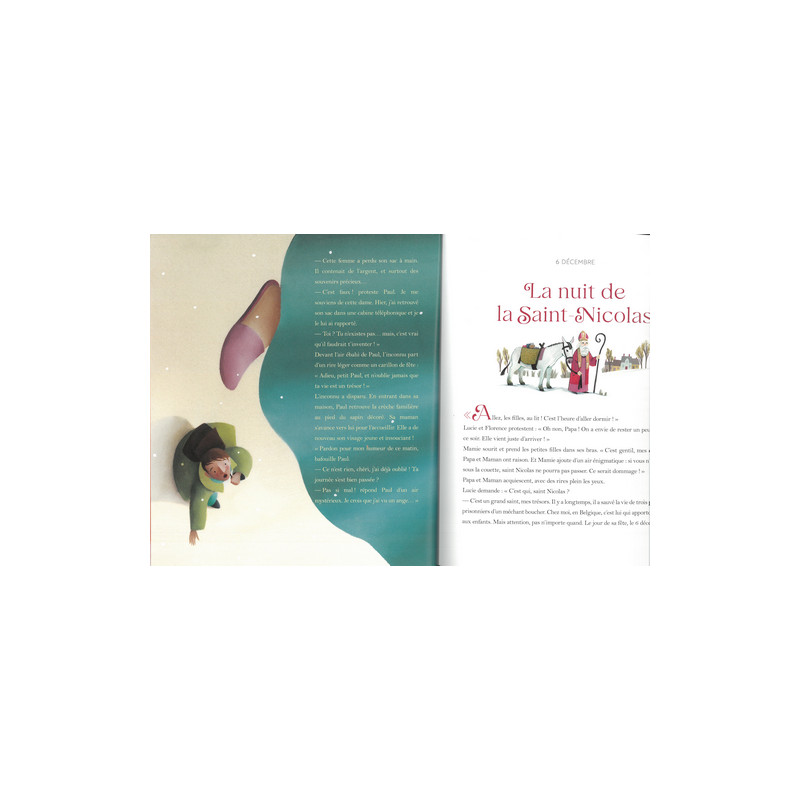 "Le santon de Timothée", L'annonce à Marie, la surprise de Dieu, La Sainte Lucie, le vieux boeuf de Bethléem, le Noël des anges... chaque histoire est proposée par un auteur et un illustrateur différents.