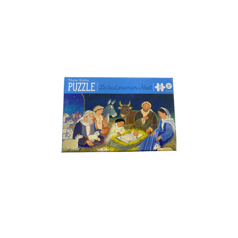 Puzzle - Le tout premier Noël - 24 pièces est un puzzle pour enfants qui permet de découvrir l'histoire de la Nativité. Le puzzle est composé de 24 pièces de taille adaptée aux petites mains. Les pièces sont en carton épais et robuste.