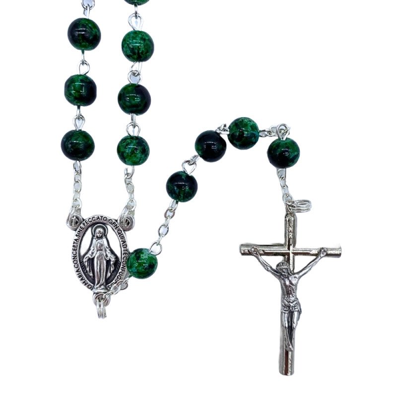 Pour préserver l'éclat de votre chapelet, évitez le contact avec l'eau et les produits chimiques. Nettoyez-le avec un chiffon doux et sec. Ranger dans un lieu sec et frais lorsque non utilisé.