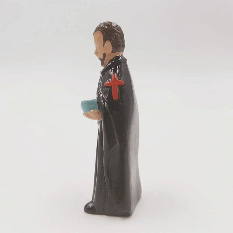 Le santon représentant Saint Camille de Lellis est une œuvre d'art exceptionnelle, façonnée avec soin en France par l'Atelier Cassegrain. Fabriqué en poudre de marbre, chaque détail de cette figurine est minutieusement décoré et laqué à la main, attestant d'un artisanat de qualité supérieure. Avec des dimensions comprises entre 4,5 cm et 5,7 cm, cette pièce est produite en édition limitée et est signée à sa base pour garantir son authenticité.