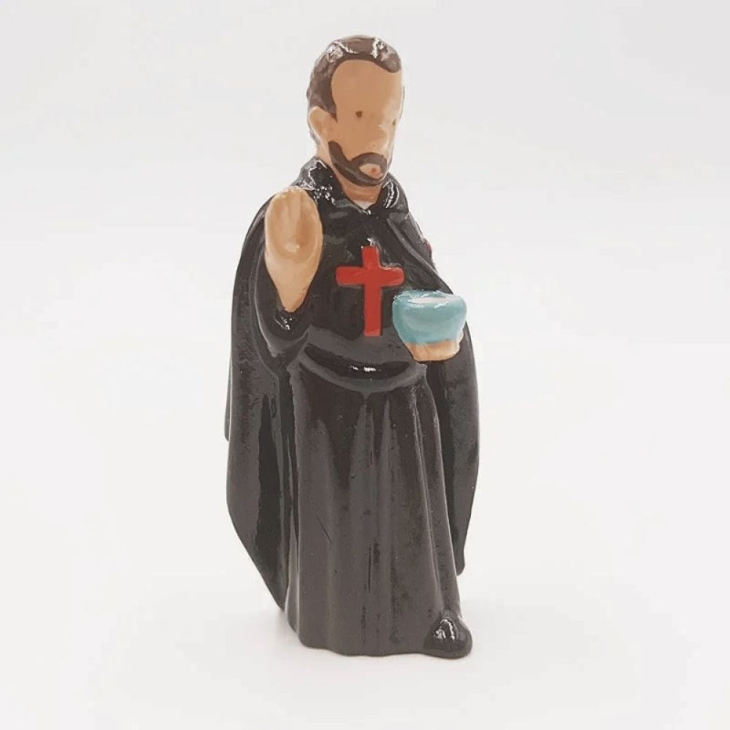 Une ogive de présentation sérigraphiée accompagne ce santon, présentant Saint Camille de Lellis. Ce saint est reconnu pour son dévouement envers les malades et les nécessiteux, ainsi que pour la fondation de l'Ordre des Ministres des Infirmes. Fabriqué entièrement en France à Janville, en Eure-et-Loir, ce santon est un hommage remarquable à la tradition et à la spiritualité.