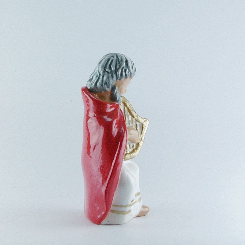 Le santon représentant Saint David est une pièce d'artisanat d'une qualité exceptionnelle, fabriquée avec précision en France par l’Atelier Cassegrain. Réalisé en poudre de marbre, chaque détail de cette figurine est soigneusement décoré et laqué à la main, témoignant d'un savoir-faire artisanal remarquable. Mesurant entre 4,5 cm et 5,7 cm, cette figurine est produite en nombre limité et est signée à sa base pour garantir son authenticité.