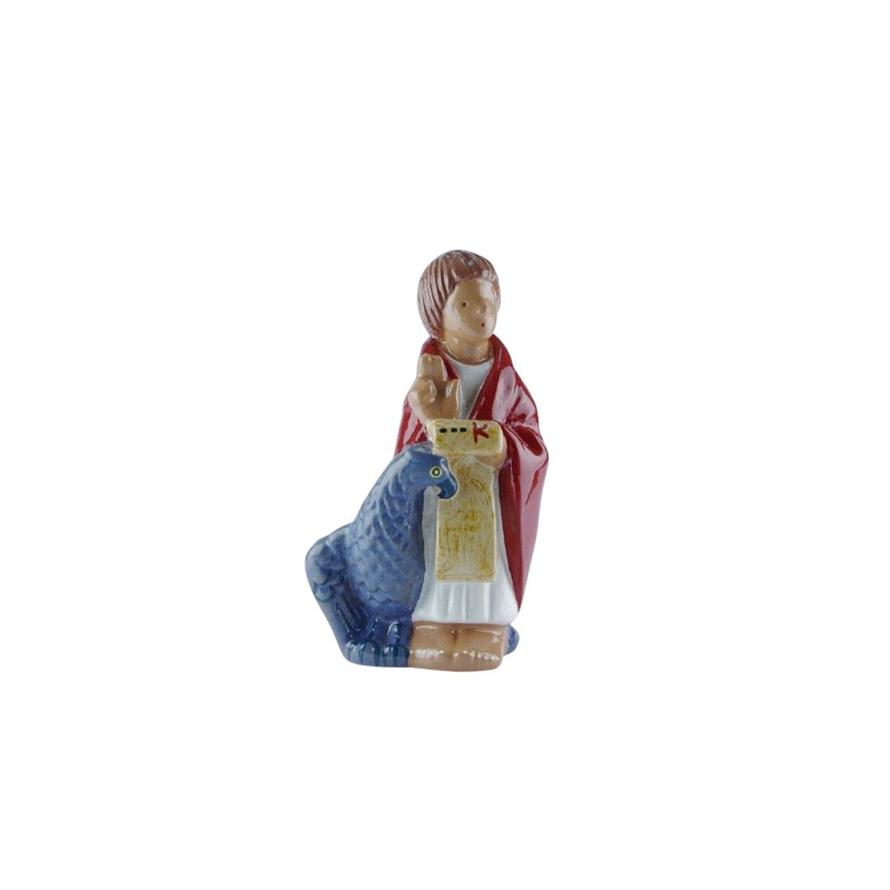 Dans la religion chrétienne, Saint Jean est souvent représenté avec un livre, symbolisant son évangile, ainsi qu'un aigle, en référence à son évangile céleste. Sa représentation incarne la sagesse et la spiritualité, en faisant une pièce précieuse pour toute collection religieuse. Fabriqué entièrement en France à Janville en Eure-et-Loir, ce santon est un hommage remarquable à la tradition et à la dévotion religieuse.