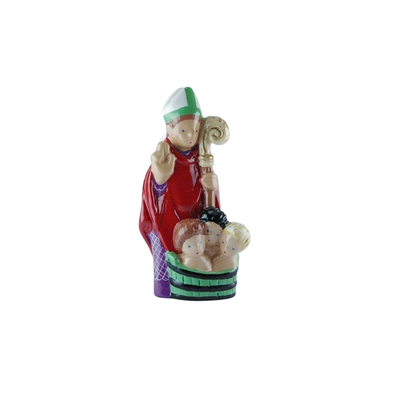 Dans la religion chrétienne, Saint Nicolas est vénéré comme le saint patron des enfants, des marins et des voyageurs. Il est souvent représenté avec une mitre et une crosse, symboles de sa dignité épiscopale, ainsi qu'avec un sac de cadeaux, rappelant ses actes de charité envers les plus démunis. Sa représentation incarne la générosité, la bienveillance et la compassion, en faisant une pièce précieuse pour toute collection religieuse. Fabriqué entièrement en France à Fleurieux-sur-l’Arbresle dans le Rhône, ce santon est un hommage remarquable à la tradition et à la dévotion chrétienne.