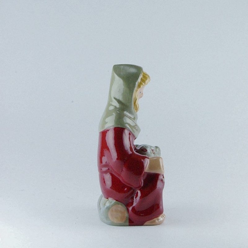Chaque pièce est unique, numérotée et signée à la base, témoignant du soin et de l'attention portés à sa fabrication. Mesurant entre 4,5 cm pour les santons à genoux et 5,7 cm pour les autres, cette création captive par sa taille délicate et sa présence imposante malgré sa petitesse.