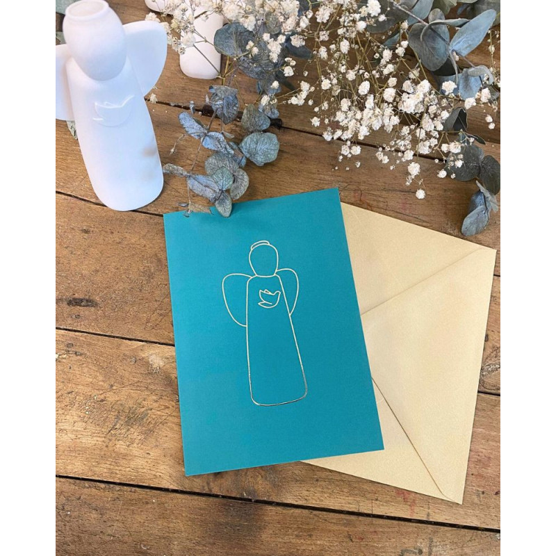 Faites plaisir à vos proches avec cette jolie carte double Emany de couleur verte représentant l'ange de la paix, finition dorée, papier effet peau de pêche et enveloppe dorée. Cette nouveauté 2024 est disponible en 5 modèles différents.