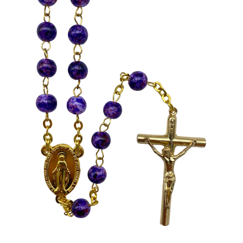 Pour préserver l'éclat de votre chapelet, évitez le contact avec l'eau et les produits chimiques. Nettoyez-le avec un chiffon doux et sec. Ranger dans un lieu sec et frais lorsque non utilisé.