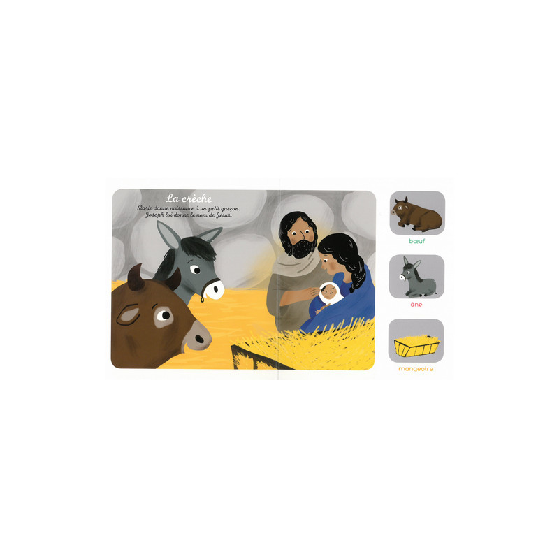 La crèche, les bergers, les mages... Cet imagier aide les tout-petits à découvrir en images la naissance de Jésus.