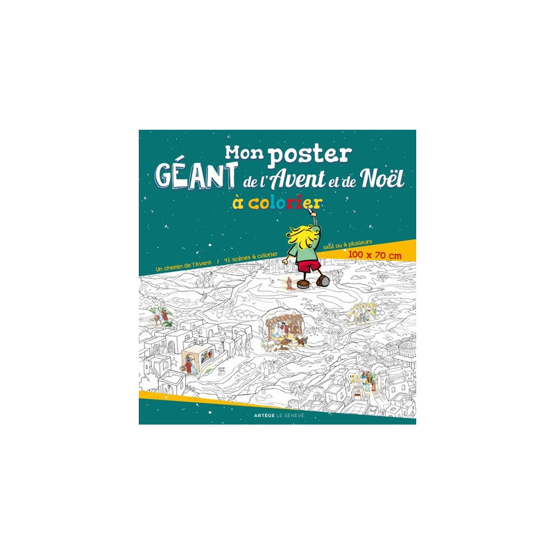 Le tout accompagné d'un poster géant de 100 x 70 cm à colorier dans une scène grandiose qui embrasse de l'attente et la naissance de Jésus jusqu'à sa petite enfance à Nazareth.