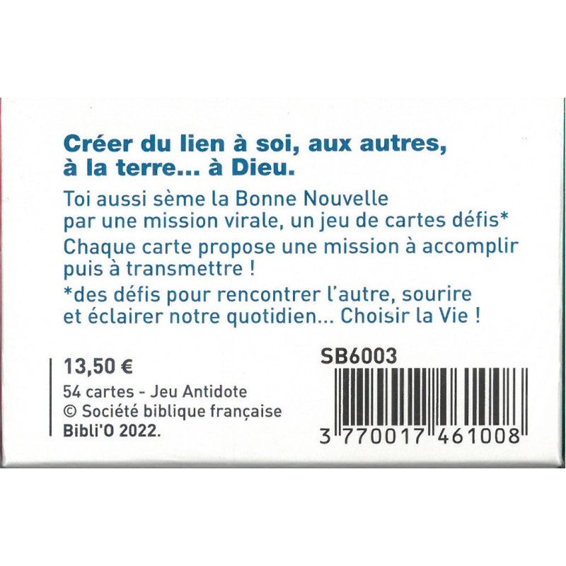 Toi aussi sème la bonne nouvelle par une mission virale, un jeu de cartes défis. Chaque carte propose une mission à accomplir puis à transmettre.