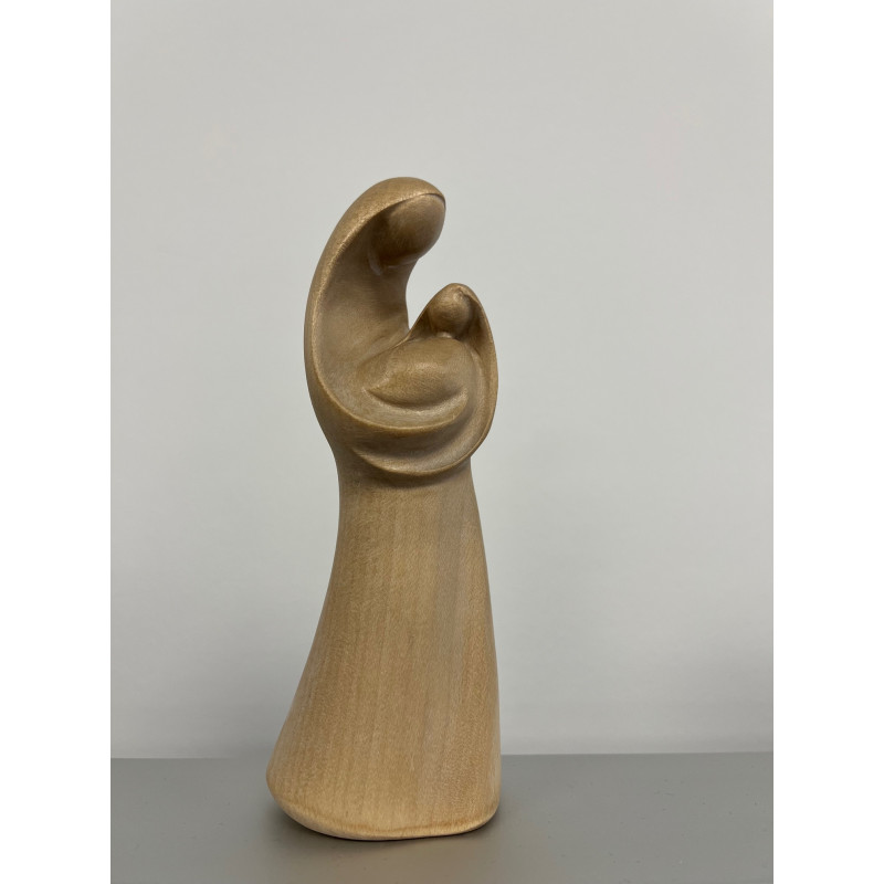 Cette statue épurée, aux lignes arrondies illustre la Vierge Marie tenant tendrement l'Enfant Jésus. Sa conception stylisée avec des courbes douces met en valeur l'amour maternel. D'une hauteur de 15 cm, elle est sculptée avec soin dans les Alpes italiennes, offrant à la fois simplicité et élégance pour toute décoration intérieure ou comme symbole spirituel.