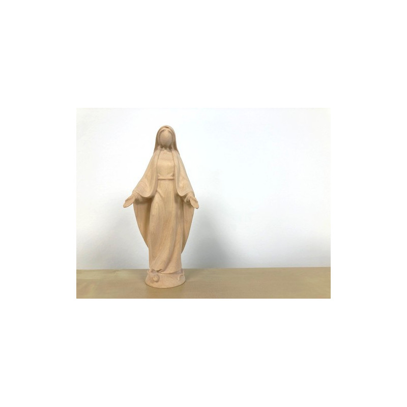 Jolie statue en bois de la Vierge miraculeuse en bois naturel.