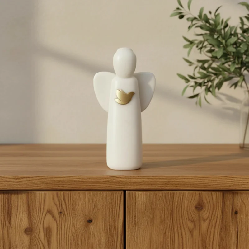 Répandez la paix et l'harmonie avec cet Ange de la Paix EMANY en pierre d'albâtre blanche avec finition dorée. Faisant partie de la collection EMANY, ce magnifique ange de 14cm de hauteur est un cadeau idéal pour les fêtes de la foi ou pour ajouter une touche sacrée à votre crèche. Son design français et sa fabrication européenne garantissent qualité et authenticité.