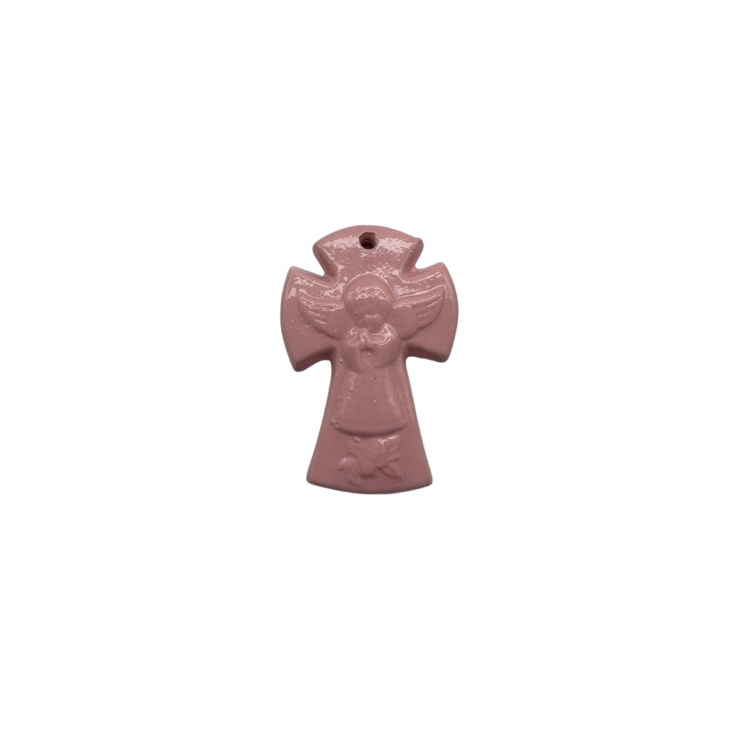 Cette croix en faïence rose est décorée d'un ange en relief, symbolisant la pureté et la sécurité. Parfaite comme élément décoratif, elle apporte une atmosphère paisible et une touche de couleur naturelle à n'importe quel espace. Sa confection artisanale assure que chaque pièce est unique, faisant d'elle un cadeau spirituel et personnel pour vos proches ou pour vous-même.