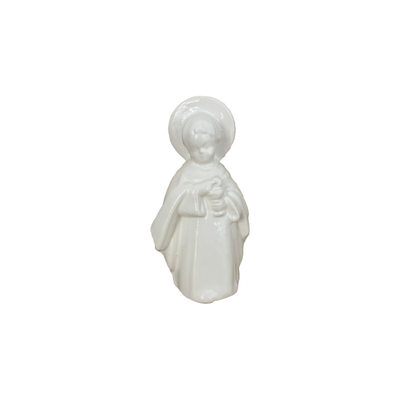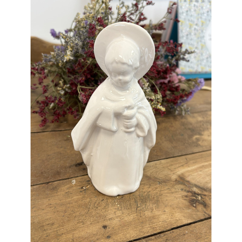 Sa finition blanche épurée symbolise l’innocence, la foi et la grâce de ce moment unique qu’est la Première Communion. Réalisée en faïence, elle allie tradition artisanale et raffinement, pour un rendu sobre et lumineux.