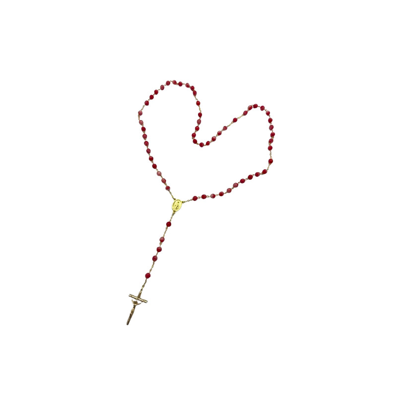 Chapelet doré avec perles en verre recyclé - Rouge