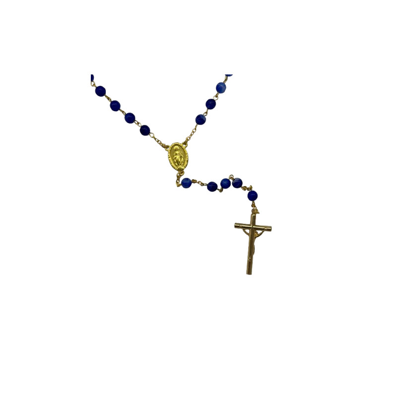 Le bleu évoque la paix intérieure, la foi profonde et la protection céleste. Ce chapelet invite à la méditation dans le calme et la confiance, idéal pour ceux qui recherchent un ancrage spirituel apaisant.