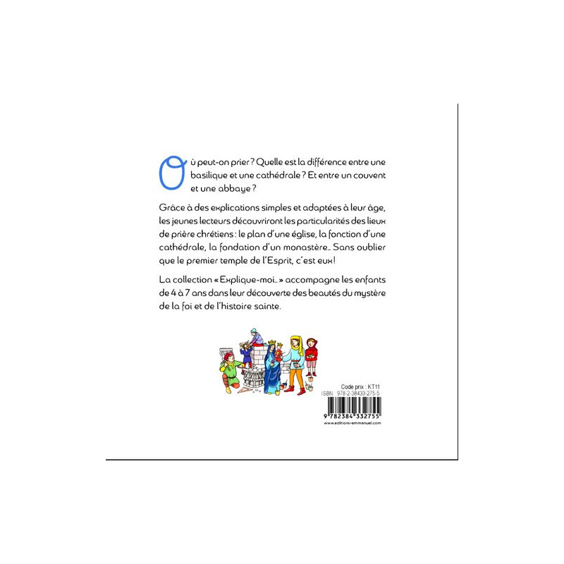 "Explique-moi… Où prient les chrétiens ?" est un livre jeunesse accessible et illustré qui répond simplement à une question fondamentale sur la foi chrétienne : où les chrétiens prient-ils ? À travers des textes clairs, des dessins adaptés aux enfants et des exemples concrets, cet ouvrage explore les différents lieux de prière des chrétiens : églises, chapelles, cathédrales, mais aussi des lieux insolites ou du quotidien. Pensé pour les enfants à partir de 6 ans, ce livre s’intègre parfaitement dans une démarche de découverte des religions, de catéchèse ou de culture religieuse. Il fait partie de la collection "Explique-moi", qui aborde des sujets spirituels ou philosophiques à hauteur d’enfant.