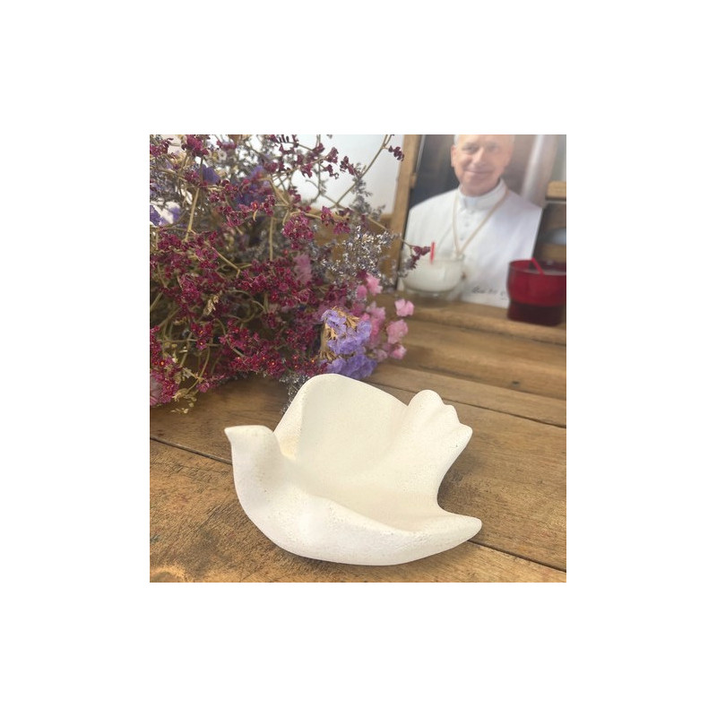 Symbole de l'Esprit Saint, la colombe est le signe de la paix, cette colombe constitue également un élément de décoration ou un cadeau unique pour un baptême, une communion, une confirmation, un mariage ou les fêtes de fin d’année.