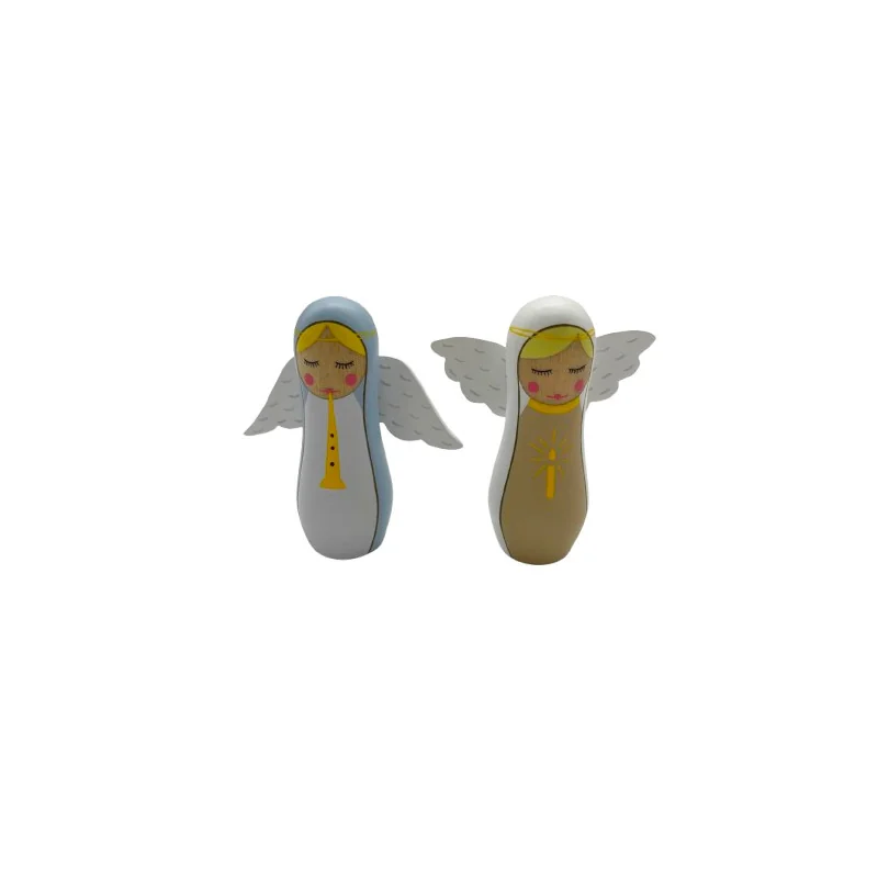 Crèche de Noël issue de la marque Howoki qui se compose de deux anges, l'un à la trompette, l'autre à la lumière. De quoi compléter cette jolie crèche de Noël pour enfant !