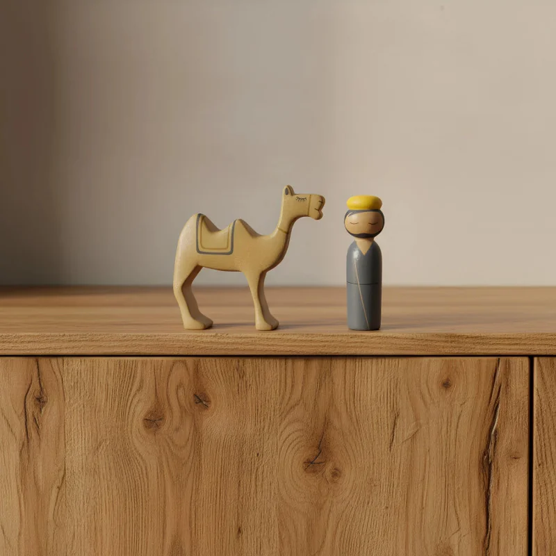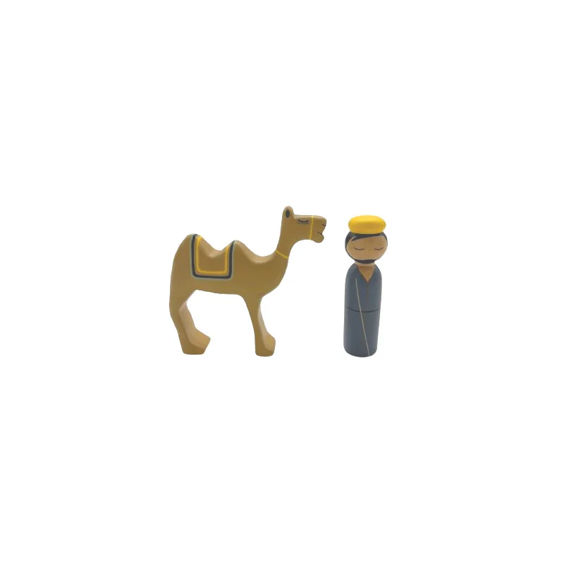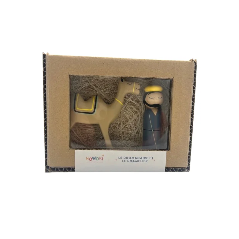 Crèche de Noël issue de la marque Howoki qui se compose du chamelier et de son chameau. De quoi compléter cette jolie crèche de Noël pour enfant !