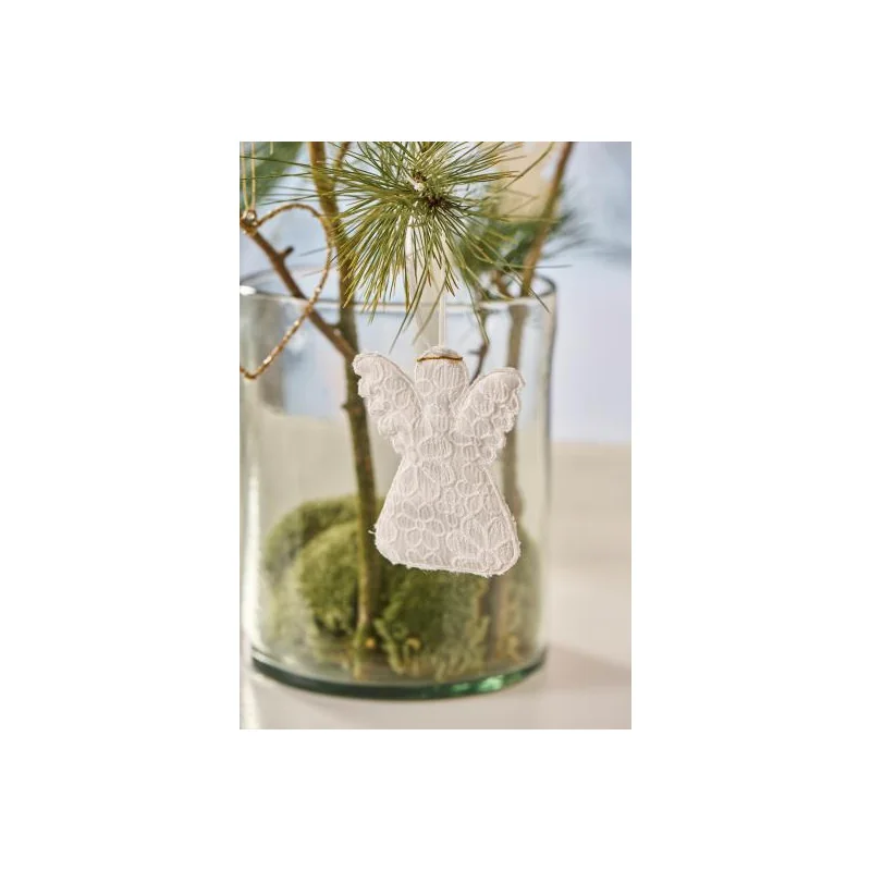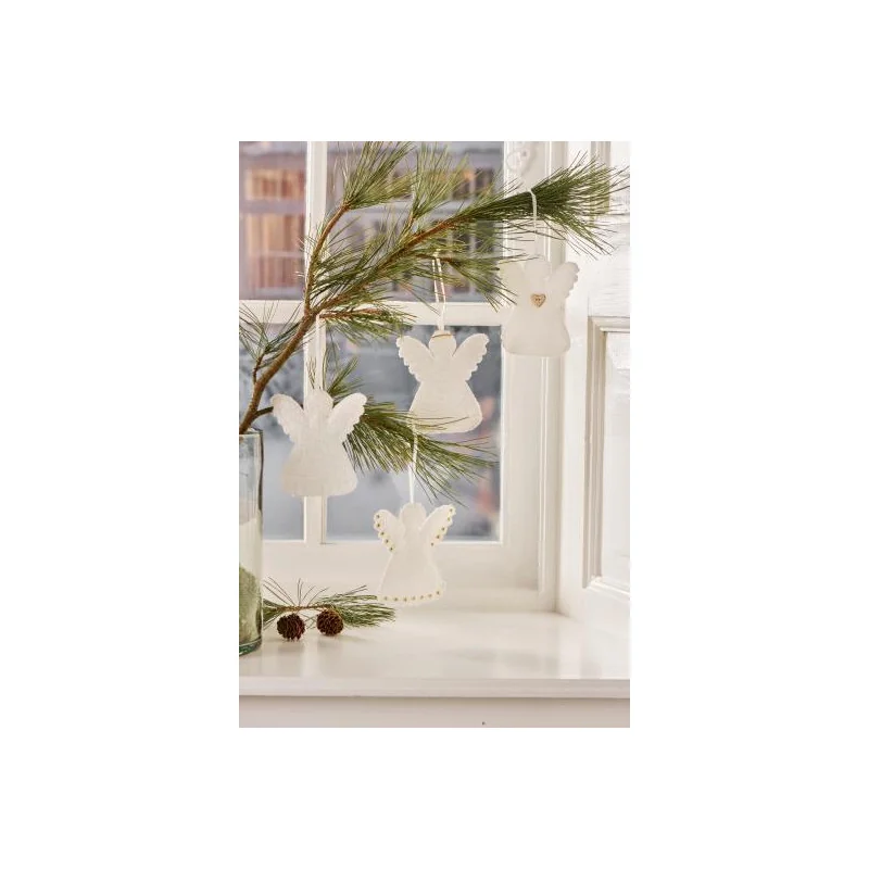 De beaux et élégants anges en quatre modèles assortis avec broderie anglaise, parfaits pour accrocher sur le sapin de Noël ou comme décoration élégante.