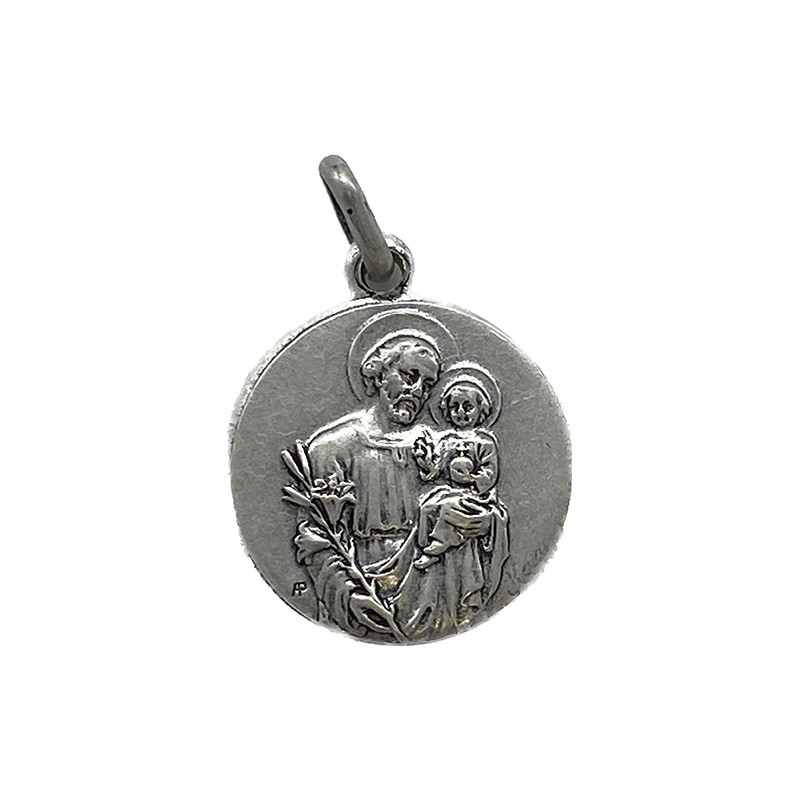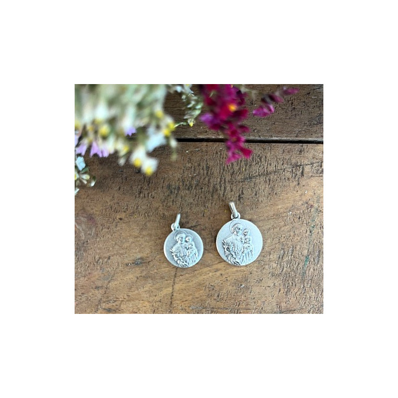 Cette médaille religieuse en laiton argenté représente Saint Joseph, patron des travailleurs, des pères de famille et de l'Église universelle. Finement gravée, elle est parfaite pour accompagner vos prières ou comme cadeau religieux pour une communion, une confirmation ou une fête des pères.